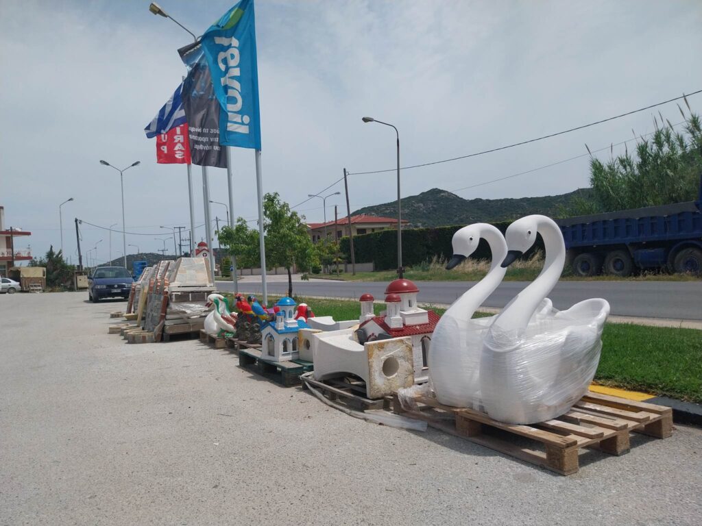 Διακόσμητικά κήπου, πέτρα εξωτερικού χώρου, πήλινες γλάστρες.
